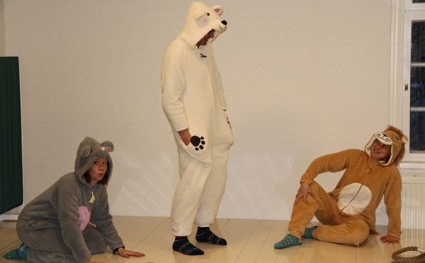 Vilskeen aikuiset pistivät itsensä peliin. Draamaryhmä ”Vilskeen villit aikuiset” laittoivat taas parastaan. Aiheena oli improvisaatioteatteria hiiren, leijonan ja jääkarhun ystävyydestä.