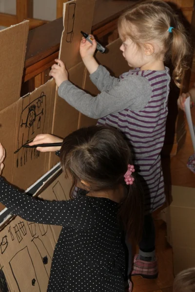 Pikkutalonväki on puuhannut vaikka mitä, huolimatta siitä, että väki on tosi pientä. Yhtenä päivänä yllätin heidät maalamasta Vilskeen kylppäristä. Pelkissä vaipoissa, silmät suurina, kädet ja koko keho maalissa he pistelivät parastaan, suuria pintoja, paljon väriä ja liikettä. Suihkun raikkaana he matkasivat lopuksi sitten pikkutaloon syömään ja nukkumaan.