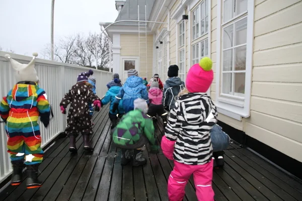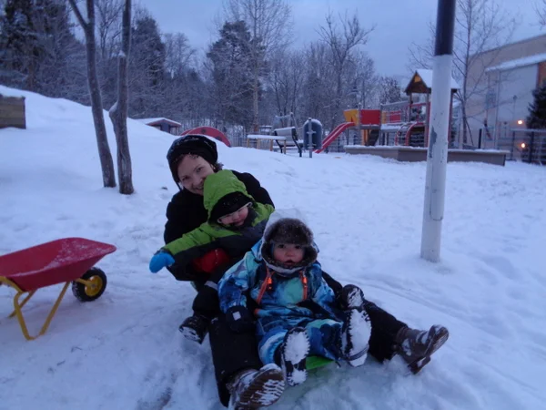 Turun talvi haastaa. Välillä paukuttaa pakkanen, välillä tulee vettä, mutta meillä ulkoillaan säässä kuin säässä. Turvallisuus on ainut, joka voi saada meidät pysymään poissa pihalta tai metsästä mutta silloinkin käymme happihyppelyllä. Terassimme onkin oiva paikka parvekejumppaan. Mukavaa vaihtelua pihaleikkeihin on leikkiä niitä parvekkeella. Ensin jumpattiin ja sitten leikimme liikuntaleikkejä.