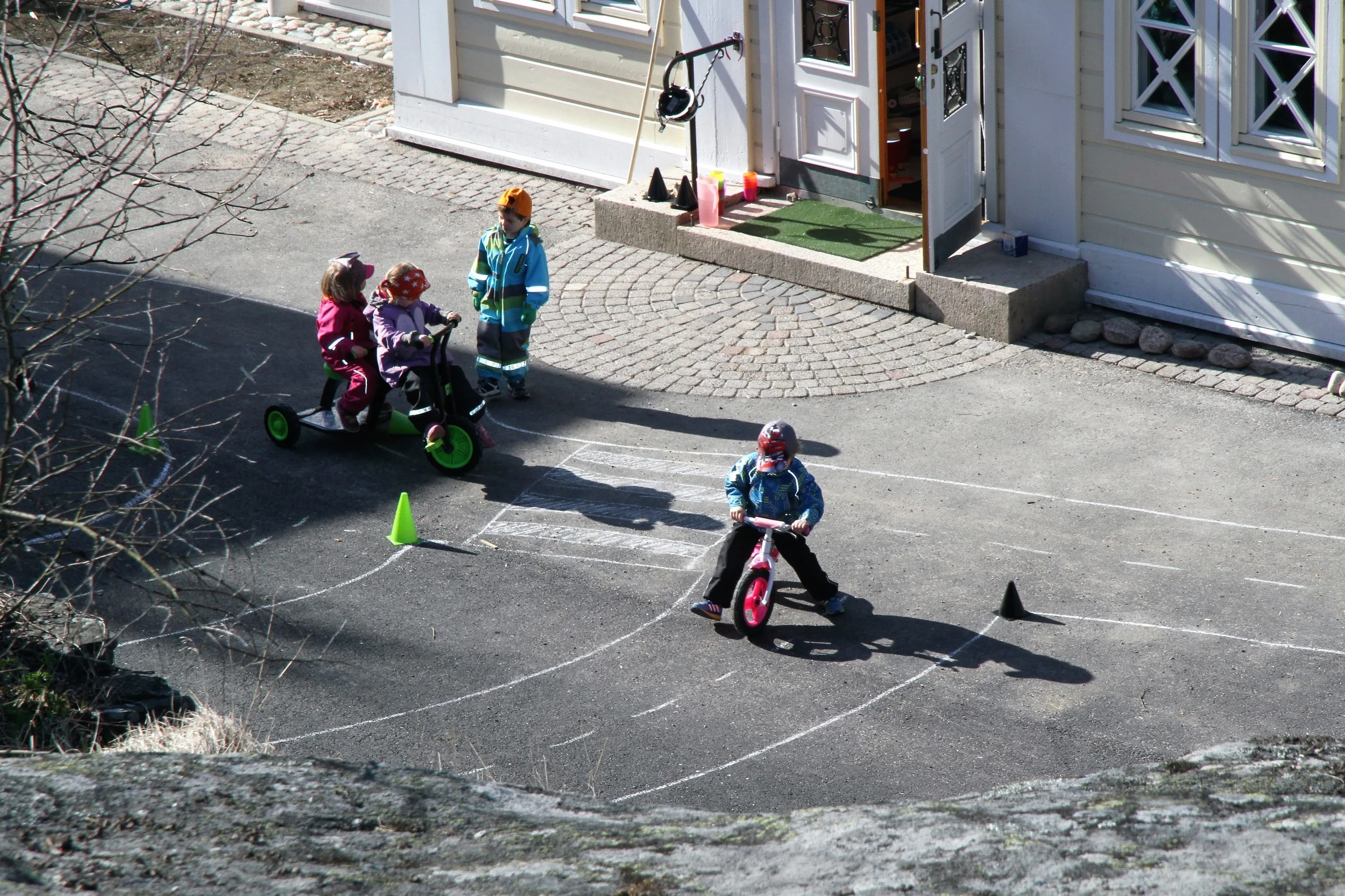 Mikä ihana vilinä ja vilske meillä nyt käykään? Tämä riemu ja vauhti! Emme ihan itsekkään osanneet ajatella kuinka paljon lisää liikettä pyöräilypiha saa aikaan.