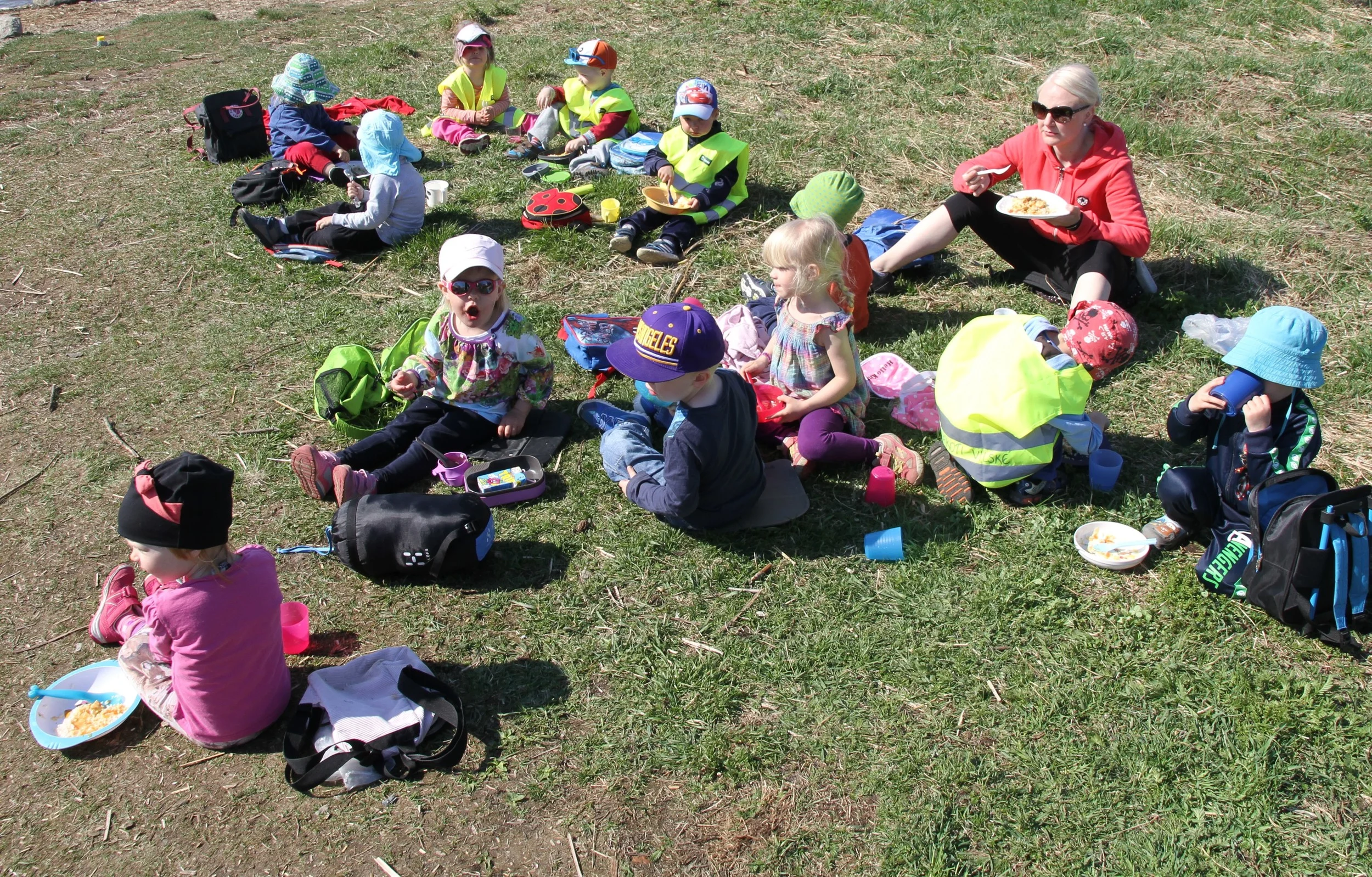 Ruokailu merenrannalla omista pienistä repuista kaivetuista astioista..
