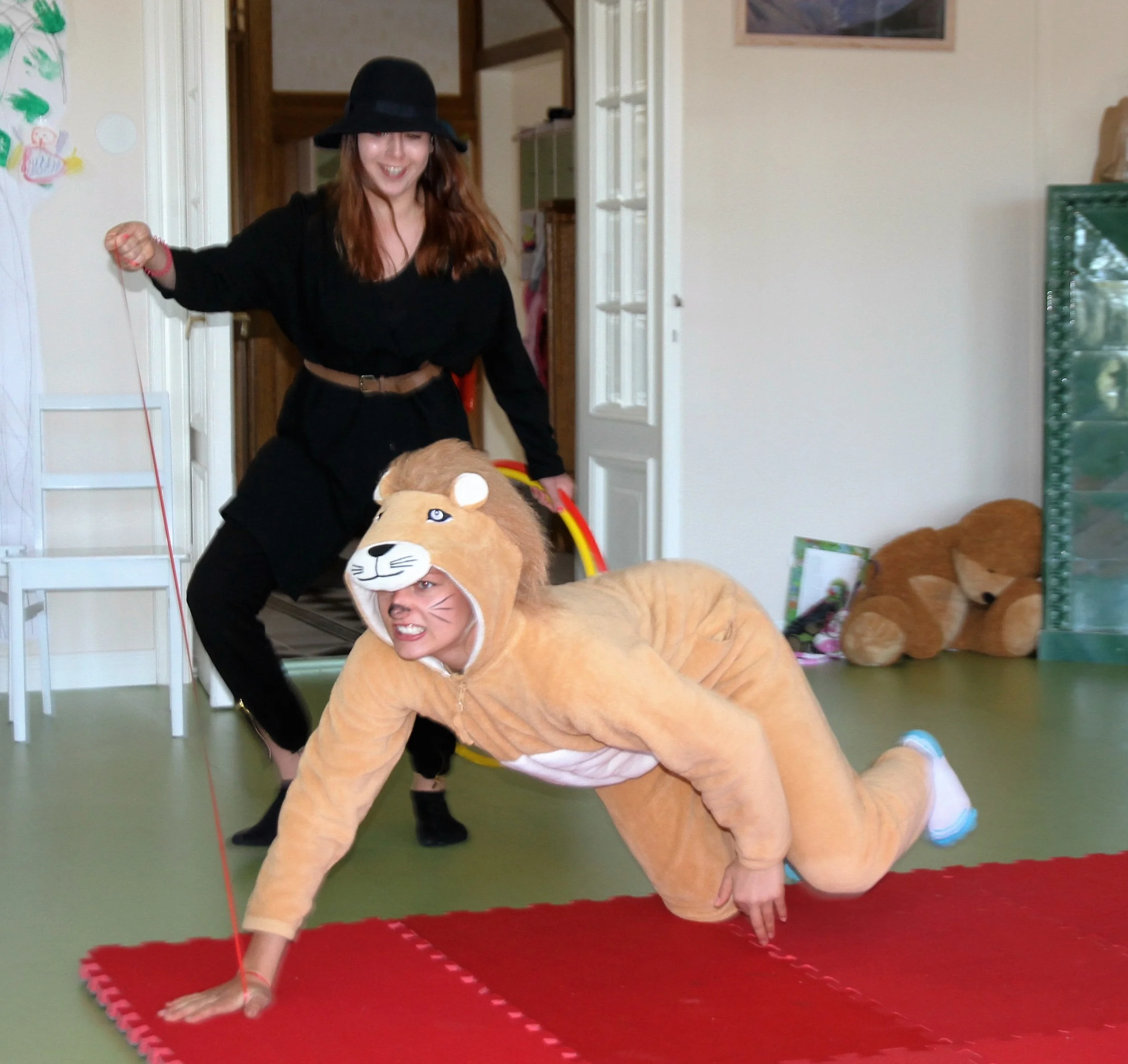 Tällä viikolla polkaisimme käyntiin myös sirkusteeman. "Vilskeen Villit" esittivät lapsille Sirkus Wilskelandian!